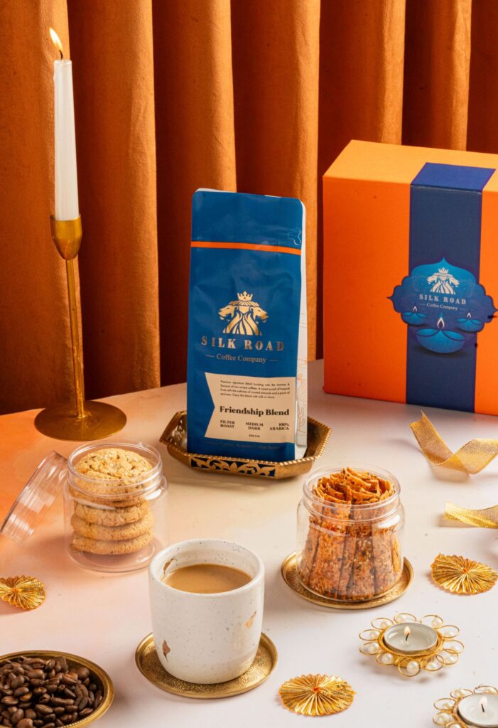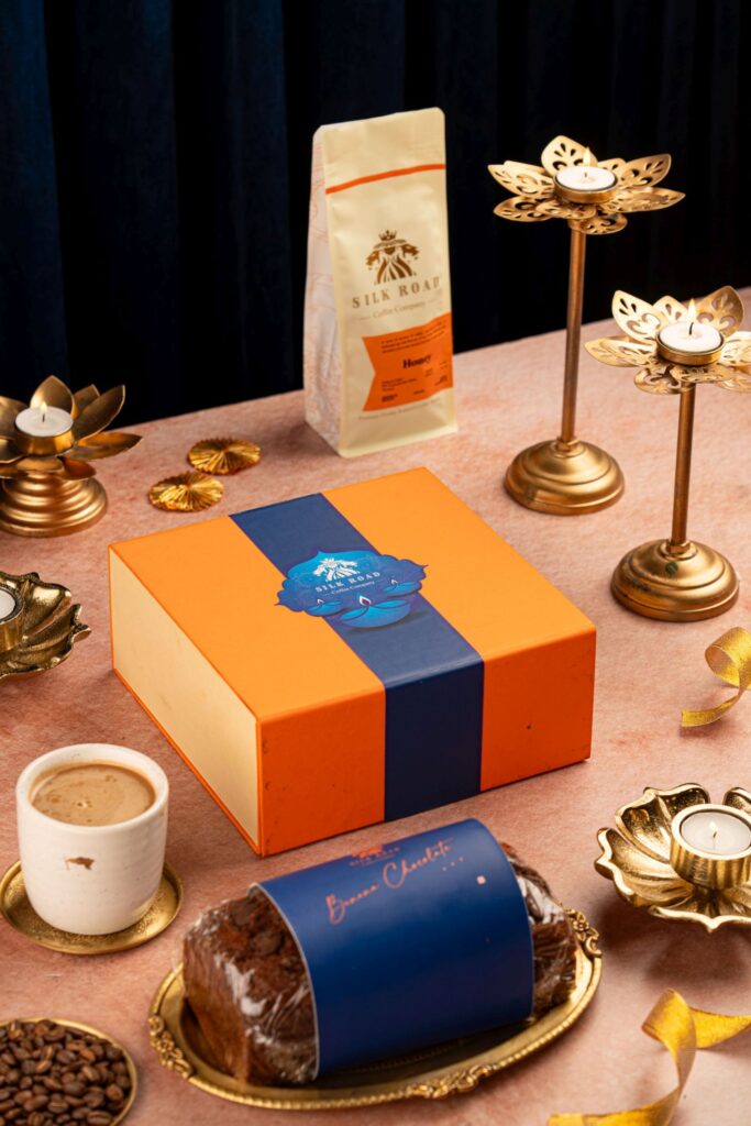 Festivals are about warmth, togetherness, and indulgence. The branding taps into these emotions perfectly. The diya-inspired motif, the luxurious gold detailing, and the festive table setups all reinforce the idea that gifting Silk Road Coffee is not just about coffee—it’s about celebrating relationships.